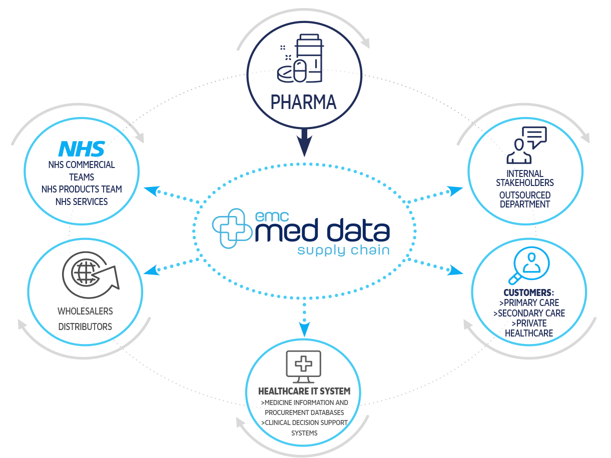 emc market access includes the med data suite, supporting Pharma with sharing and managing product information.